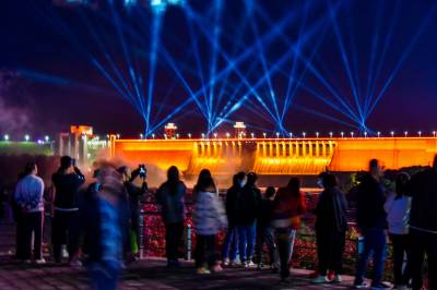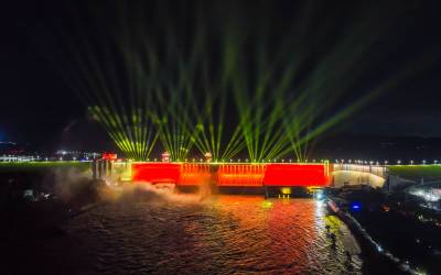 2023年10月3日,丹江口市连续10余天的连续降雨,汉江上游山洪下泻,丹江口大坝水位达到168米。大坝连续多日开闸泻洪,与节日夜晚的灯光秀相印形成绚丽多彩夜色美景,吸引众多省内外游客前来观赏。