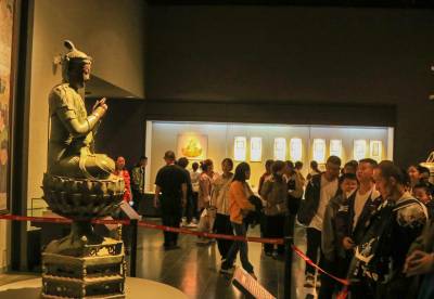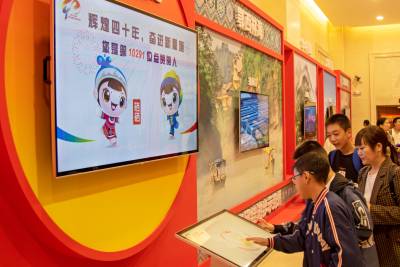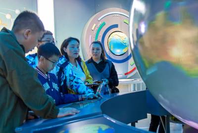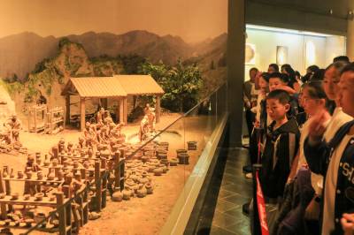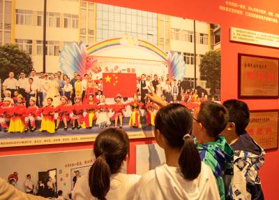 10月6日上午,恩施市小渡船民族中学的家长和孩子们在州文化中心参观建州40年成就展。