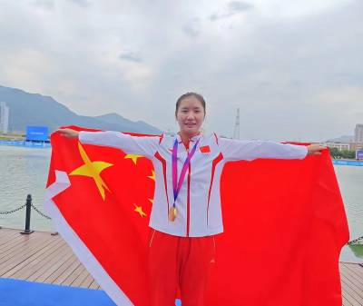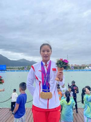 于比赛中三战三捷,和队友包揽女子组龙舟200米、500米、1000米三枚金牌。