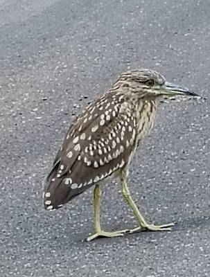 10月9日,湖北堵河源国家级自然保护区白河管理站工作人员在巡护过程中,在路上发现了一只奇怪的动物,身上羽毛棕白色横斑,背部羽毛灰褐色,嘴巴尖细,后经专家认定是夜鹭。