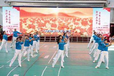 2023年10月21日,洪湖市十多支老年运动团队500多名队员相聚市体育馆,载歌载舞迎接重阳节,乐享银龄。