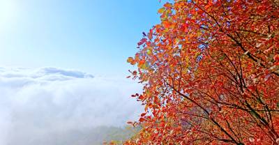 郧西娘娘山:风催云海浪涛涌 叶应寒露遍山红