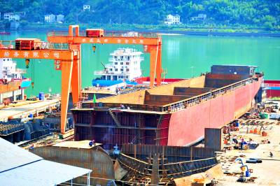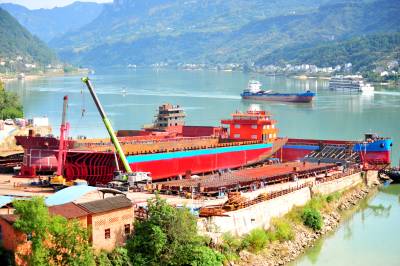 近年来,随着长江黄金水道航运事业的快速发展,宜昌长江西陵峡沿岸建起造船工业走廊。乐天溪造船基地具备轴舵系自主加工能力,投产20年来已完成60多万载重吨新船建造任务。