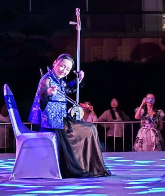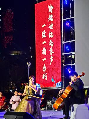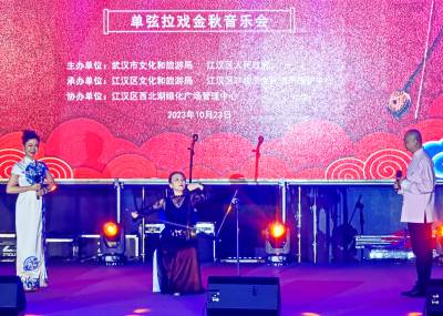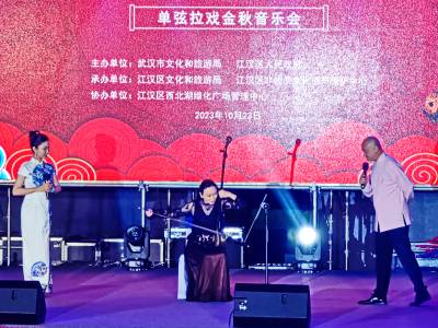 10月23日晚,"跨越世纪的琴声·一弦一指一台戏--单弦拉戏金秋音乐会"在武汉西北湖绿化广场举行。单弦拉戏拥有100多年历史,是武汉市江汉区的湖北省级非物质文化遗产项目,其主要特点是在一根弦上用一根手指模仿各种戏曲不同流派、行当的唱腔、模仿人物对话、模仿动物鸟类的声音等。当晚音乐会在“单弦拉戏”省级代表性传承人李进的经典戏曲串烧中拉开序幕,单弦模仿戏曲唱腔惟妙惟肖,尽显单弦拉戏的独特魅力。随后由“单弦拉戏”第三代嫡传人、省级代表性传承人顾丽敏带来的一曲原创音乐《持续》,将单弦与大提琴结合在一起,让观众感受当代非遗的传承与创新。该音乐会由武汉市文化和旅游局、江汉区人民政府主办,江汉区文化和旅游局、江汉区非物质文化遗产保护中心承办,江汉区西北湖绿化广场管理中心协办。