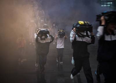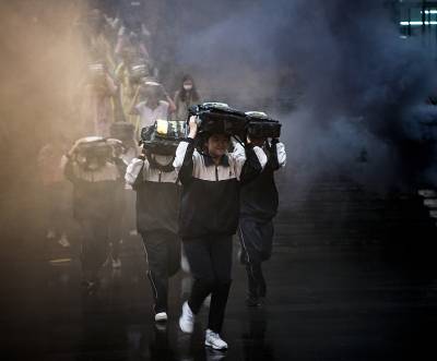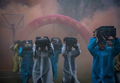 2023年10月25日下午四点整,“呜——呜”的警报声长鸣武汉空中。湖北武汉市二中广雅中学校园内浓烟滚滚,形势千钧一发。几百名学生头顶民防应急包,在老师们的引导下,迅速撤离教学楼,进入人防工程进行躲避。这是武汉市二中广雅中学正在举行的一次防空防灾综合演练。本次学校以演练形式缅怀85年前的苦难,帮助学生树立爱国主义观念:英雄武汉,警钟长鸣,勿忘国耻,强国有我。