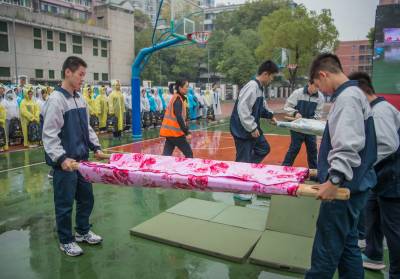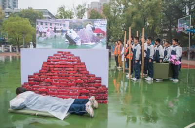 16:30,解除警报响起。地下人防工程的学生们在班主任的带领下来到操场。现场指挥徐安民主任发布清点人数命令,操场上即刻响起了各班响亮的报数声。各班报告结束,发现还有4名学生未到现场。指挥员立即下达命令,救援队即刻出发搜寻营救。