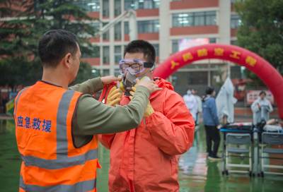 与此同时,另外两名“受伤”学生也在教学楼下被成功找到。并在防化演练和医疗小组的成员救助下成功和所有学生汇合。在操场上的同学们围观了所有过程,心潮澎湃,一时掌声如雷。
