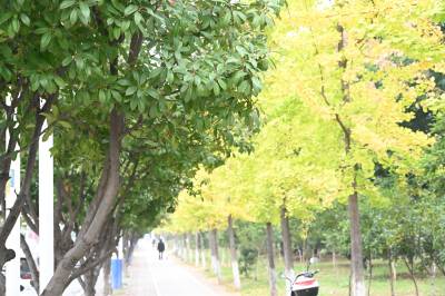 10月25日,在十堰市郧阳区茶店镇金龙大道海德公园段拍摄的路两旁的银杏叶。视界网王涛摄