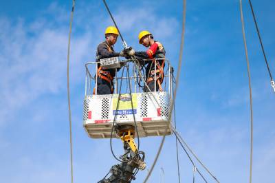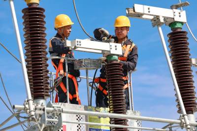2023年10月26日,湖北省襄阳市,在汉丹线简家坡牵引变电所,中国铁路武汉局集团公司襄阳供电段工作人员对线路改造。