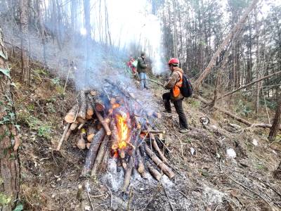 为做好松材线虫病疫情防控工作,林业部门、各乡镇要利用会议、广播、宣传车、发放宣传册、设置固定宣传牌等方式到村到户,广泛开展预防除治工作宣传,落实“五个一”标准(山上不留一株死树、地上不遗一根枝丫、林内不露一个伐桩、路上不丢一根疫木、房前屋后不见一段松木);各乡镇要充分发挥村级林长及护林员巡林巡查作用,发现枯死松树及时向县林业部门送检,早发现、早报告、早除治;对松材线虫感染的枯死松木要集中除治,各乡镇对纯松林内零星枯死松树要做到即死即清,除部分疫木点对点交由疫木加工企业处理外,其它所有树干及直径1厘米以上的枝条全部现场集中焚烧处理。除治过程中要严格落实森林防火有关规定,办理野外用火手续,加强现场监管,严防引发森林火灾;县林业部门要集中执法力量,全面开展检疫执法检查和农户疫木清剿行动,严厉查处违法违规调运、使用、加工经营、捡拾疫木等行为,严防疫木流失。(视界网程平 摄影)