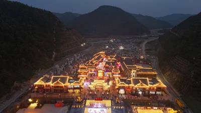 伟光汇通汉水九歌文化旅游康养综合体项目位于十堰市郧阳区茶店镇曾家沟村,是湖北省重点文旅产业项目,是由伟光汇通旅游产业发展有限公司建设开发,斥资50亿打造的“楚风汉韵文化旅游小镇”。项目总占地266万平方米,其中建设用地面积106万平方米,总建筑面积106万平方米,主要建设内容包括楚地文化风情古镇、综合演艺广场、精品酒店及民宿客栈、景观水系、康养恢复中心、康养商业配套、产权式旅居公寓等工程。该项目将挖掘郧阳区历史文化内涵,积极引入文化、旅游、康养、演艺、现代服务业等相关产业,植入主题特色美食、康养休闲设施、体验式文化馆、演艺剧场、特色民宿、产权式旅居公寓等产品,发展壮大郧阳区文化旅游产业。项目立足本地城市休闲客群、外地旅游客群两大客源渠道,全力打造向世界展示十堰人文魅力的“文化旅游中心”“城市会客厅”“鄂西北旅游集散地”,在历史深处寻找有内容有发酵力的文化IP。项目在建设和运营过程中,会带动建筑业、制造业和旅游业等诸多行业发展,预计年均利税额可达5000余万元。项目建成后可带动周边土地增值、关联产业发展,预计创造间接就业岗位3000余人。2023年10月27日,伟光汇通汉水九歌文化旅游康养综合体项目商业古镇一期开街。视界网王涛摄