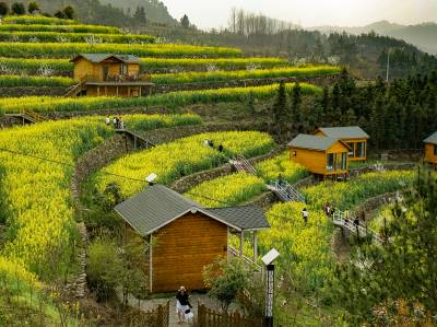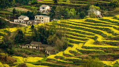 此外,图片6油菜花海展现了春天生机勃勃、万物复苏的美好景象,也表达了对自然环境的热爱和保护。图片7翰春如画,展现了一幅山水画,画中描绘了春天的景色,有山有水有树有花,色彩鲜艳,如同一幅美丽的画卷。这张图片表达了春天之美以及人与自然的和谐相处。