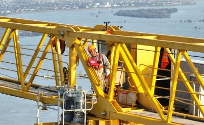 2023年11月6日,在牛首汉江特大桥高达216米的塔式起重机上,湖北特种设备检验检测研究院襄阳分院检验人员对塔式起重机进行检验。今年以来,湖北特检院以优化营商环境为主线,以保障特种设备安全为中心,围绕重点,对标对表,扎实推进,实现特种设备报检必检100%核心指标,严格依法依规依程序检验,确保检验结论正确率100%。湖北特检院襄阳分院创建“红色特检小分队”,充分发挥党建引领作用,从检验任务分派时限、安排现场检验时限、报告出具时限在原规定时限基础上均压减30%,特种设备的检验率、检验结论正确率达到100%,隐患跟踪服务率95%、技术解答满意率达98%以上。