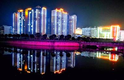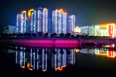 11月21日晚,笔者用手机拍摄的湖北省竹山县宝丰镇集镇一河两岸璀璨的夜景一角。当夜幕降临,华灯初上,两岸柔和内敛的灯光主次收放,勾勒出集镇最美的模样。水的涟漪、光的斑斓、行人的欢笑、孩子的嬉闹,鸣奏出这水与景、光与影的华美乐章。