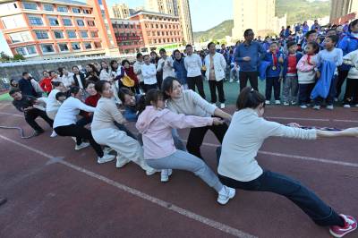 11月22日,竹山县恒升小学冬季运动会上,教师组也设置跑步、跳远、跳绳、投标、引体向上、拔河等比赛项目,全员教师积极参加比赛项目。