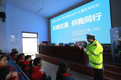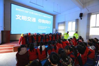 宝丰镇是全县人口大镇、教育大镇。目前,辖区内有高中生2640人、初中生2246人、小学生4453人、在园幼儿1927人,交通压力大、易拥堵,存在一定的安全隐患。今年12月2日是第十二个122“全国交通安全日”,主题是“文明交通 你我同行”。第十二个122“全国交通安全日”前夕,为营造浓厚的宣传氛围,提高广大师生交通安全意识和自我保护能力,有效预防道路交通事故发生,竹山县公安局交警二中队和宝丰镇各学校联合开展交通安全宣传活动,教育师生学走路、会乘车、知危险、会避险。