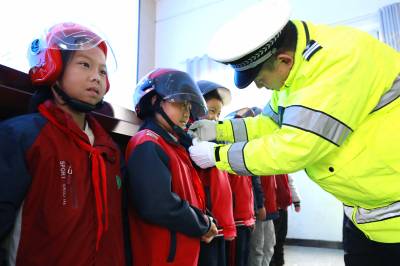活动中,民辅警结合学生的年龄特点,从122“全国交通安全日”的含义、由来及举办“全国交通安全日”目的、意义等着手,围绕今年122“文明交通 你我同行”主题,观看交通安全视频,发放《守法规知礼让 安全文明出行》宣传资料,演示如何正确佩戴头盔,认识各种交通信号标识牌,重点讲解日常生活中行走、过马路、乘车时应注意的交通安全事项及自我防护技能。通过以案说法,现场问答互动等方式,结合生活中真实的案例,介绍了当前道路交通安全的形势,重点告诫孩子们自觉抵制乘坐违法载人老年代步车、三四轮车,以及闯红灯、逆行、不走斑马线、不戴安全头盔、不系安全带等交通违法行为的危害性,引导孩子们养成自觉遵守交通法律法规,安全文明出行的好习惯。同时当好家庭“交通安全宣传员”,提醒家长骑乘摩托车、电动车要佩戴安全头盔,开车要系安全带,酒后不驾车等交通安全常识,避免交通事故发生。