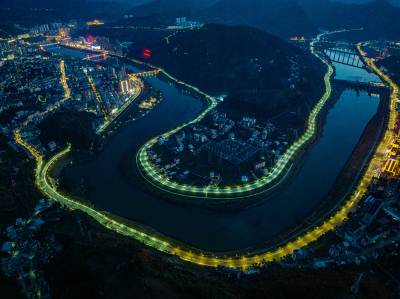 12月4日,夜幕下的竹山县城,华灯初上, 流光溢彩,蜿蜒流过城区的堵河,将小城的夜景装扮得格外美丽,呈现出一幅山清水秀、美丽和谐的生态画卷。