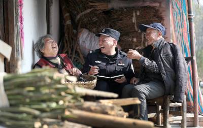 12月5日,在湖北省沙洋县十里铺镇李河村,十里铺派出所驻村辅警陈方新用幽默、犀利的语言和“接地气”的普法宣传,化解了一起两农户因地界产生的纠纷。