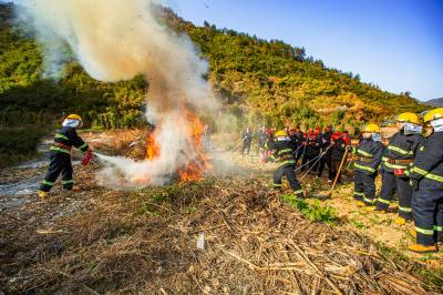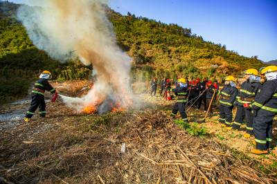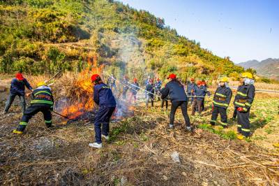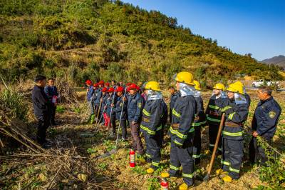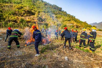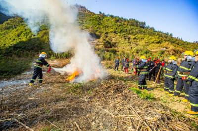 2月6日,在竹山县深河乡双湾村,专业消防人员演示灭火器操作示范。当日,竹山县深河乡组织部分护林员、应急民兵分队开展冬季防火实操演练。演练现场模拟森林发生火灾为背景,对火灾扑救中的火灾报警与应急响应、灭火力量集结、展开灭火行动和清理移交火场进行了连贯演示。