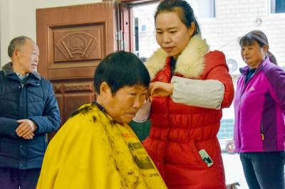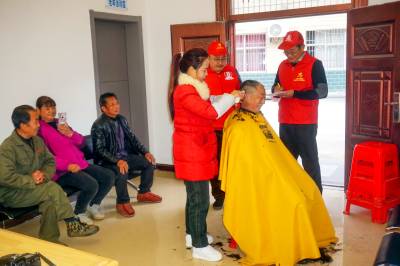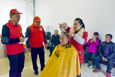 2023年12月8日,十堰市郧阳区叶大乡闵家村村在地图中查看民正在康乐园享受村级每月免费理发福利,区民政局驻村工作队的两名队员负责现场登记和服务。由于该村山高路险,留守老人理发成了大问题,为此村委会从山外请来理发师每月8日定期免费为村民理发,受到村民们的欢迎。