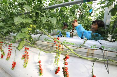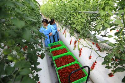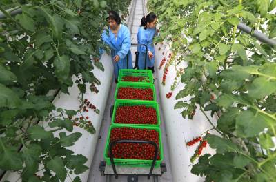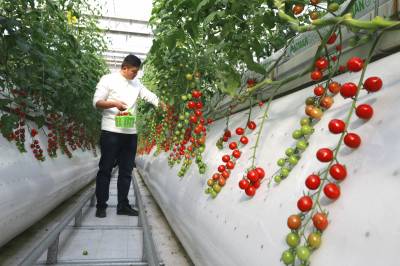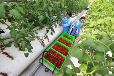 据悉,五福龙井智慧农业产业园玻璃温室采用栽培、灌溉、环控三大智能系统,配套锅炉加热供暖、智能滴键、风控洁净空气循环,科学控制棚内光、温、水、气、肥等生长环境。实行水肥一体化的无土栽培,主要从事小番茄、大番茄、辣椒、草莓、水果黄瓜等栽种,实现了精准化种植、科学化管理、零污染排放,有效促推乡村振兴,拉动区域经济发展,带动周边村民实现稳定增收。 (视界网 朱本双 朱海涛 摄)