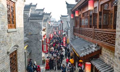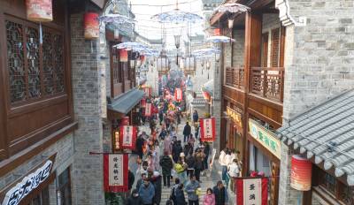12月30日,游人在位于襄阳古城内的管家巷文化休闲街区游玩。