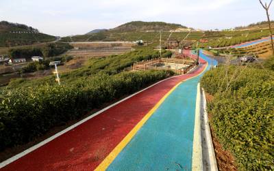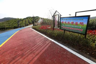 1月29日,竹山县宝丰镇龙井村“彩色公路”像一条“彩带”,盘旋曲折,镶嵌在翡翠般的茶园中。近日龙井村竣工的1500米“彩色公路”和2000米采茶体验游步道,路景交融,自成一景,将成为春节期间游客的“打卡胜地”。