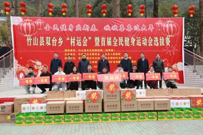 1月30日,由双台乡党委、政府主办的“全民健身庆新春、欢欢迎喜喜过大年”竹山县双台乡首届全民健身运动会在双台乡中心学校落下帷幕,来自全乡14个村400多名运动员参加了拔河、旱地龙舟、跳绳、同心协力、贤夫背妻、兰球等8个项目的比赛。经过激烈角逐,10名运动员分别获得一等奖,乡党委现场给他们颁发了奖牌和奖品。据悉,“村运会”已在全县17个乡镇全面展开,该县已将“村运会”作为农民体育运动着力打造的群众文化活动品牌之一,以后每年举办一届。