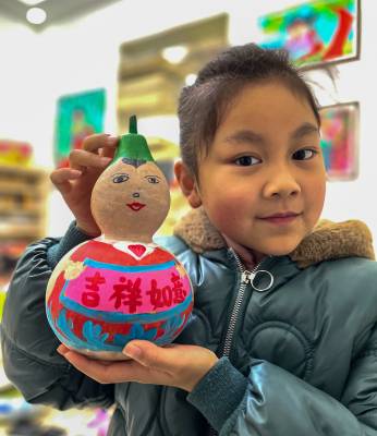 1月31日,武穴市第二实验小学学生文欣晨展示自己的手绘葫芦画作品。寒假期间,该校倡导学生从繁重的文化课中解放出来,多参加兴趣爱好活动,丰富自己的知识,过一个充实而有意义的假期。通讯员刘飞摄