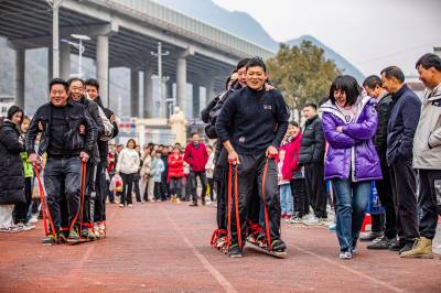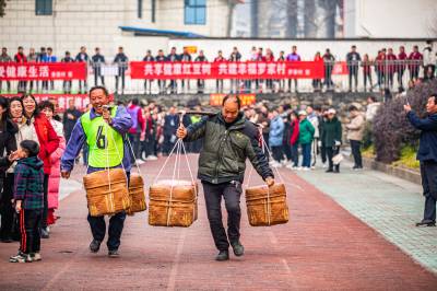 1月30日,“全民健身庆新春·欢欢喜喜过大年”乡村运动会在竹山县双台乡举办。来自14个村200余名村民参加了混合拔河、旱地龙舟、贤夫背妻、同心协力、挑粮比赛、三人制篮球等竞赛项目。丰富多彩的群众运动会展现了新时代深河乡农村农民昂扬的精神风貌和乡村文明新乐章。