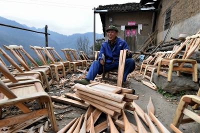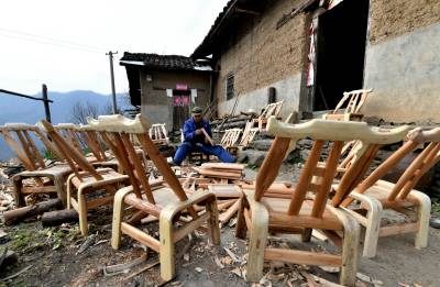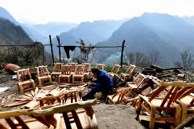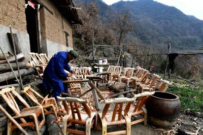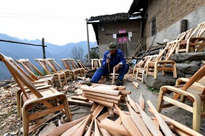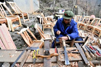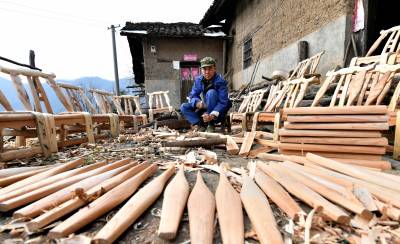 2024年1月30日,湖北省十堰市郧阳区五峰乡石门村四组,村民王德清在家门口忙碌着赶制春节前最后一批小木椅订单。王德清利用当地独特的木质资源,手工制作的小木椅美观大方,舒适耐用,深受用户的青睐。通过电商平台,他把小木椅卖到全国各地,产品供不应求,仅此一项年收入6万多元。