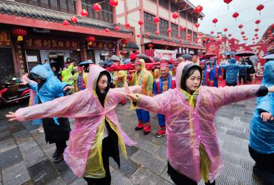 2月1日,是腊月廿二。以“同心缔造幸福年”为主题的龙年茅庙集庙会,在湖北省武汉东西湖区柏泉街茅庙集古镇拉开了为期三天喜庆序幕。“同心缔造幸福年”龙年茅庙集庙会,湖北咸丰县、新疆双河市、武汉东西湖区三地为促进经济、文化、民族融合,同聚千年古镇,载歌载舞,舞龙跃狮,共庆佳节,武汉市民、外地游客慕名而至与该区老百姓共品民俗、共寻年味。活动期间,设置了200多个摊位,包含非遗文化体验区、商品展销区、歌舞表演区等,打造沉浸式打年货场景,丰富了市民、游客的春节体验。