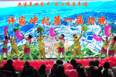 许家冲被誉为长江三峡“坝头库首第一村”。近年来,许家冲村感恩奋进,拼搏进取,三峡移民群众的日子过得越来越红火。该村首届村晚以村民为主角,以村民小组为单位,用自编、自导、自演的节目和接地气的表演方式,共叙乡情、共话发展,生动展现了三峡移民群众积极向上的精神风貌和幸福和美的乡村生活。