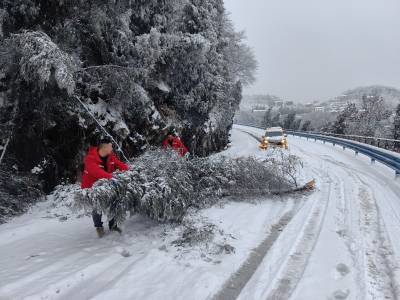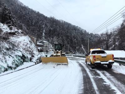 从2月2日开始宜昌降下中雪海拔800米以上的区域交通受阻,3日4日两天降下大雪,全域交通受阻。夷陵交通公路部门第一时间启动应急预案,立即对辖区G347南德线、G348武大线、S216夷五线等多条国省干线开展除雪防滑作业。根据路面积雪情况,在平交路口、急弯陡坡等易结冰路段撒布融雪剂,出动除雪铲、山猫除雪滚刷、撒布机等机械设备,采用梯队除雪作业模式,人机配合昼夜不间断清除路面积雪,最大限度减少降雪对公路通行造成的不利影响,确保春运畅通。