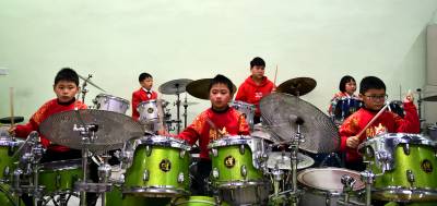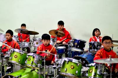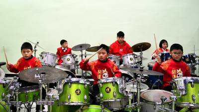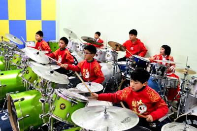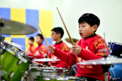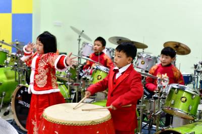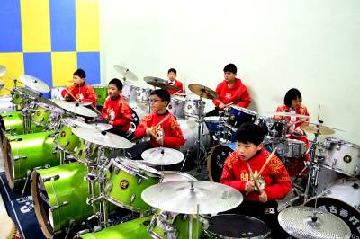 他的努力得到了回报,今年1 月份,他受到了中国教育电视台的邀请,带领13名少儿参加龙娃闹新春少儿春节晚会,录制的节目是朗诵,架子鼓《说唱中国红》,将在中国教育电视台2月16日播出。