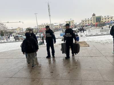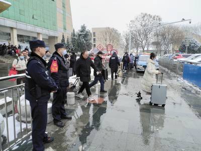 面对持续的降雪天气,当阳站派出所密切关注旅客列车运行及客流变化,部署警力加强对当阳车站进出站口、候车室、广场等重点区域的巡逻防控,配合相关单位做好出租车载客、私家车停放秩序维护工作,全方位提高见警率和管事率,确保治安秩序稳定。同时执勤民警坚守岗位,开展“我为群众办实事”活动,协助车站维护好旅客上下车秩序,提醒旅客防止摔倒,开展提运行李、扶老携幼等活动,帮助困难群众排忧解难。