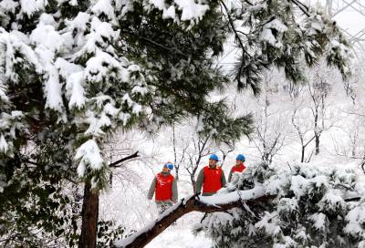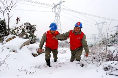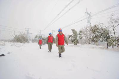 当日,湖北地区持续强降雪。为确保电网可靠运行,孝感供电公司迅速组织400名特巡人员冒雪巡视所辖区域内的输电线路,实时了解掌握线路和铁塔覆冰情况,确保电力设备正常运行。