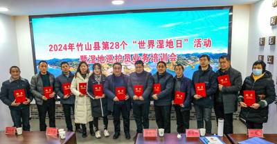 “我们巡护员一定要履行职责,主动作为,要当好圣水湖国家湿地公园宣传员、排查员、情报员,以昂扬斗志奋力推进湿地生态文明建设再上新台阶”。2月2日,湖北竹山圣水湖国家湿地公园组织机关全体干部和聘请(续聘)13名巡护员开展了湿地业务知识培训活动后,上庸镇南坝村巡护员杨清斌说。