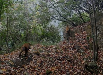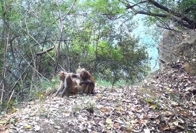 在红外相机镜头前,野生猕猴群时而在林间跳跃穿行,时而在树上爬上爬下,时而在地上嬉戏打闹,身姿矫捷,其乐融融。