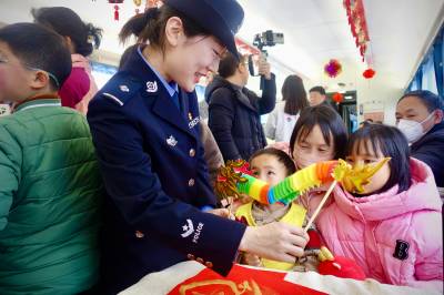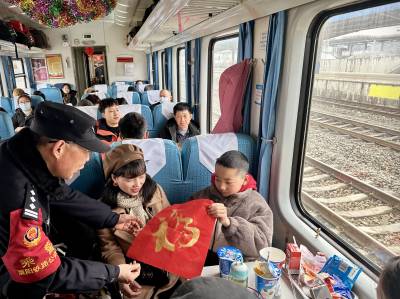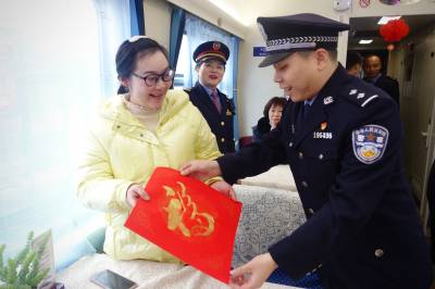 精彩的节目结束后,铁路公安民警及列车工作人员们又走进车厢把一幅幅字画、春联、福字送到乘客手中,整个车厢气氛热烈,让本次旅途充满了节日的温暖。