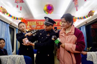 2月7日,十堰开往上海南的K124次列车上洋溢着春节的喜庆氛围,由襄阳铁路公安处、襄阳客运段、十堰车务段等单位联合开展的列车上的“春晚”联欢活动在行驶的列车上进行。