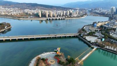 2024年2月8日,十堰市房县城区梯级河流湿地水清岸绿,成为创建全国文明城市的标杆工程。