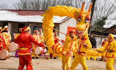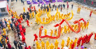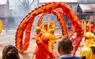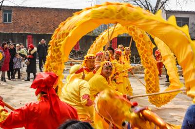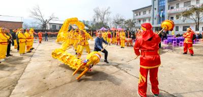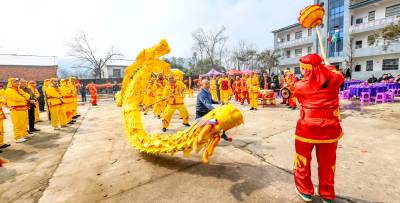 嘉鱼高铁岭峡山杜家湾村民舞龙闹新春