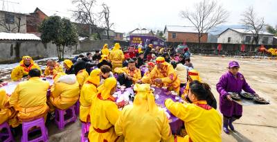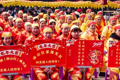 舞龙表演、比赛结束后,共聚年团圆饭30桌,共同举杯,祝福:龙年大吉,身体健康,万事如意!嘉鱼全媒体记者雷平