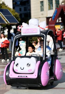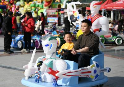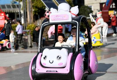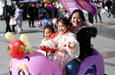 2024年2月11日,大年初二,市民在湖北省襄阳市保康县紫薇广场游玩。 春节期间,人们用多种方式放松休闲,乐享假期。