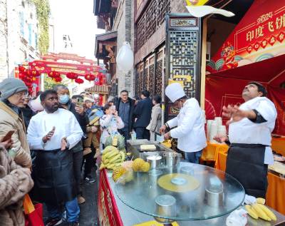 印度飞饼飞入武汉园博园 为汉口里新春庙会添欢乐