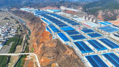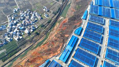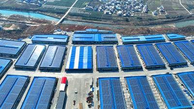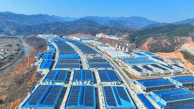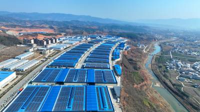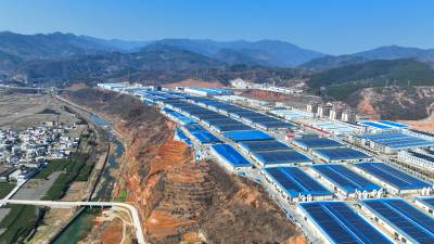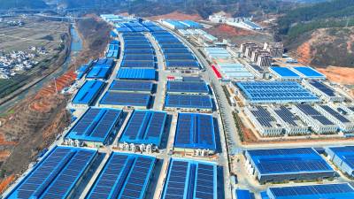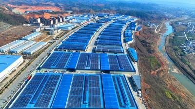 2024年2月13日,十堰市房县北城工业园屋顶光伏发电基地,绿色低碳光伏能源为企业“顶上添金”。