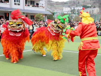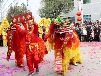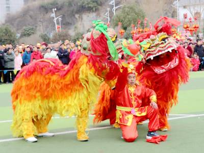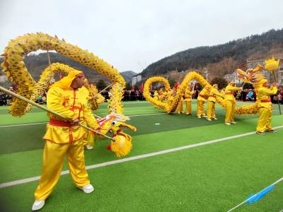 舞龙的小伙子们,舞龙头、翻龙身、绞龙尾,将龙腾盛世演绎得活灵活现。锣鼓队员们擂响震天的锣鼓,高奏奋进的号角,踏着和谐的节拍,与舞龙配合得十分默契,带给群众妙趣横生的视觉盛宴。