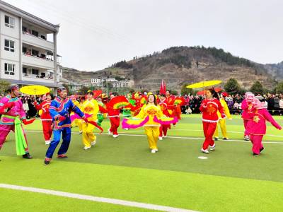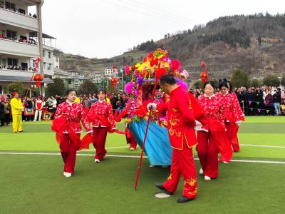 经过精彩的巡游后,该乡17个村村民和乡中心学校教师排练的锣鼓、舞龙、舞狮、彩船、秧歌、民族舞、腰鼓舞、灯舞、汉服表演等多彩活动,在竹坪小学操场轮番上阵,精彩纷呈。歌声、笑声、掌声、欢呼声与演绎声汇合成了一曲迎新春、庆升平的赞歌。